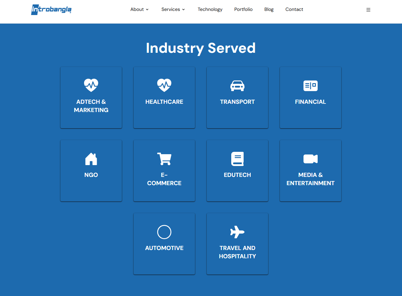 Introbangla is a comprehensive corporate website tailored for a leading IT solutions provider. The design prioritizes a professional, trustworthy aesthetic using a corporate blue color palette to communicate reliability and scalability. The layout is structured to effectively showcase complex service offerings—from dedicated offshore teams to custom software development. It features dynamic sections for industry verticals, technology stacks, and client testimonials, creating a compelling narrative for potential B2B partners looking for digital innovation.